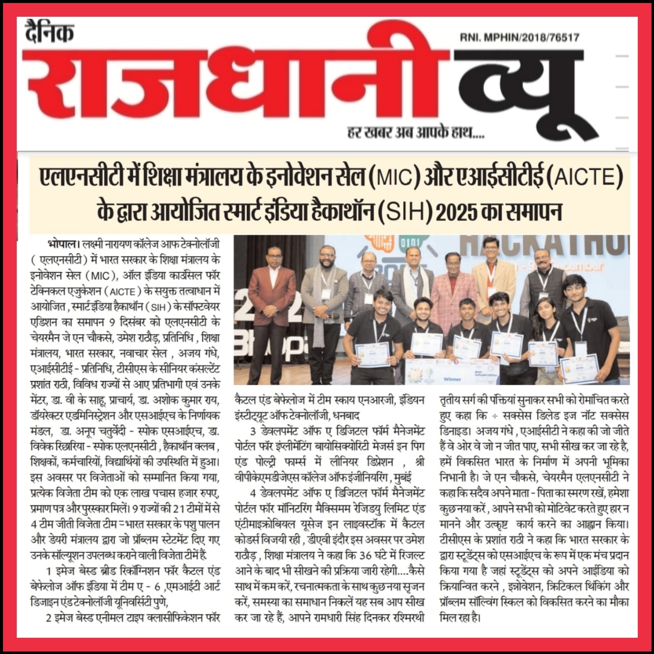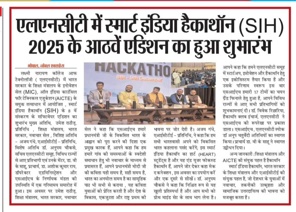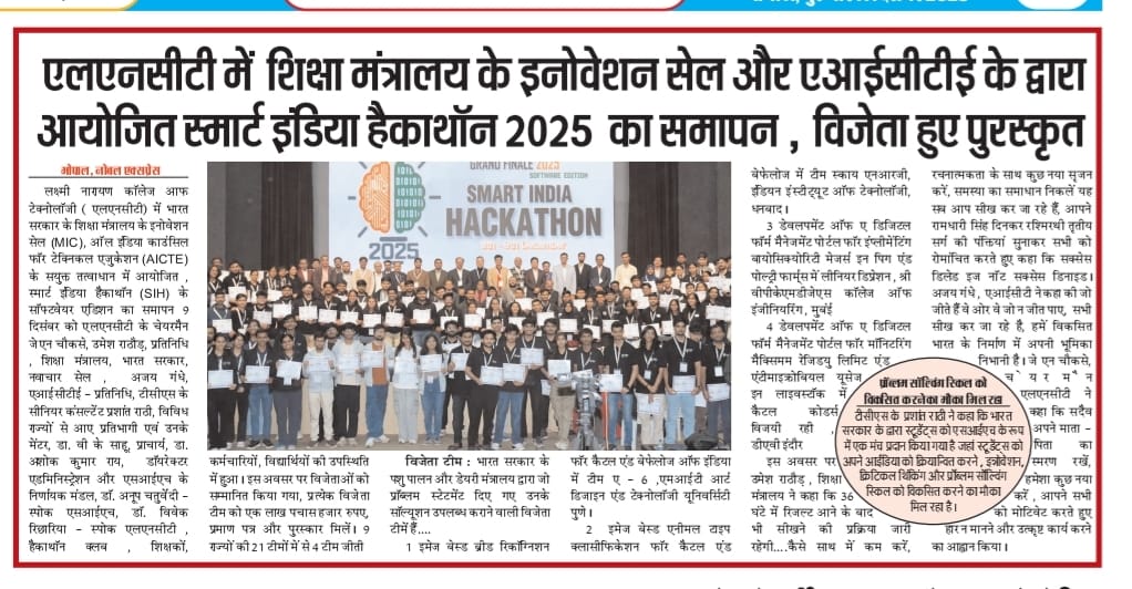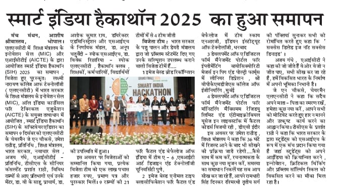 Media Coverage Smart India Hackathon - 2025 Smart India Hackathon - 2024 Smart India Hackathon – 2022 Smart India Hackathon – 2020 Smart India Hackathon – 2019 Smart India Hackathon – 2018
